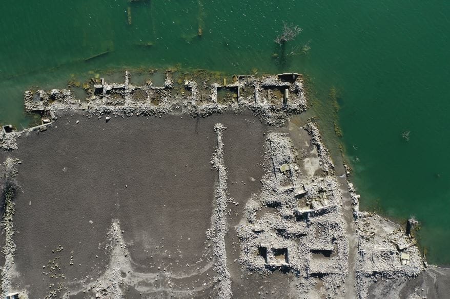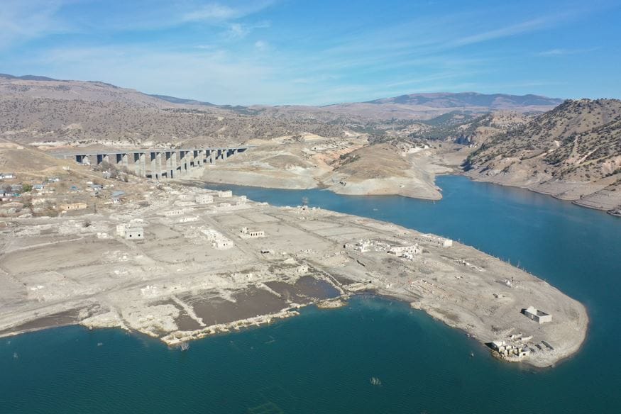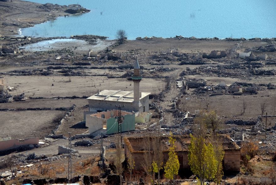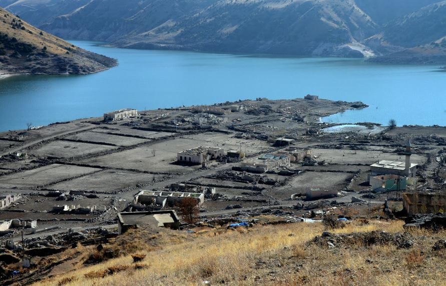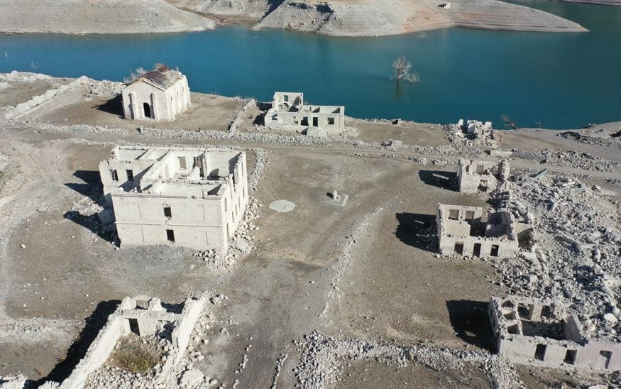 Baraj kapaklarının kısmen açılmasıyla su seviyesi düşünce köydeki evler, cami, kilise ve bazı tarihi binalar gün yüzüne çıktı.